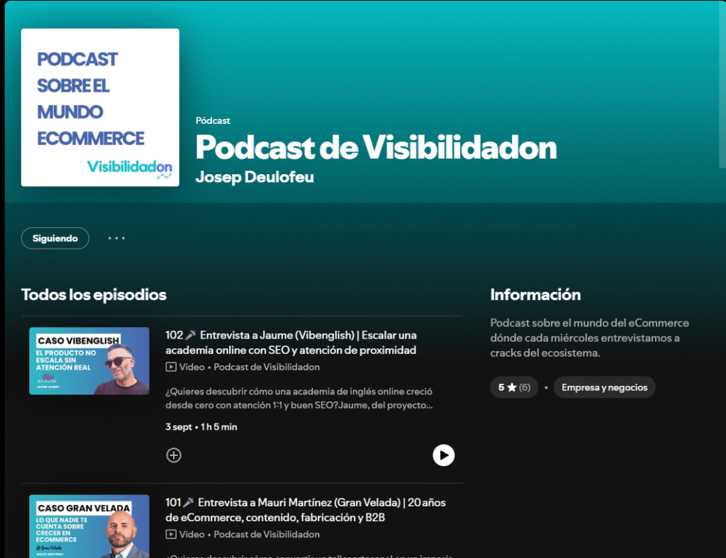 - Oyente obsesivo de podcasts de eCommerce, aquí tienes un listado de entrevistas a eCommerce (Más de 100).