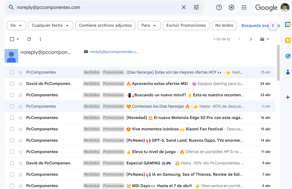 Resaltar el caso opuesto de PCcomponentes que factura 500 Millones.