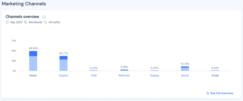 Pero además resaltar el canal de Paid, dónde sinceramente creo que en Meta ADS si que lo están metiendo muuucha caña, más del 0,23% que dice similar web.