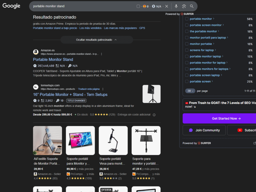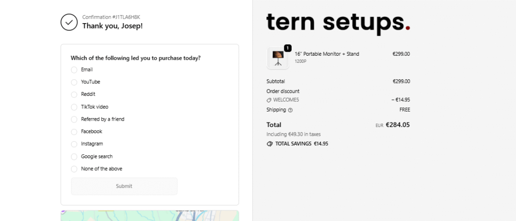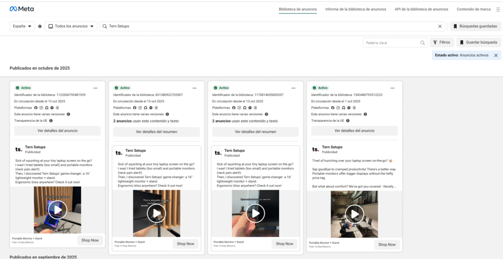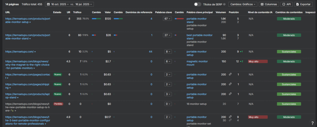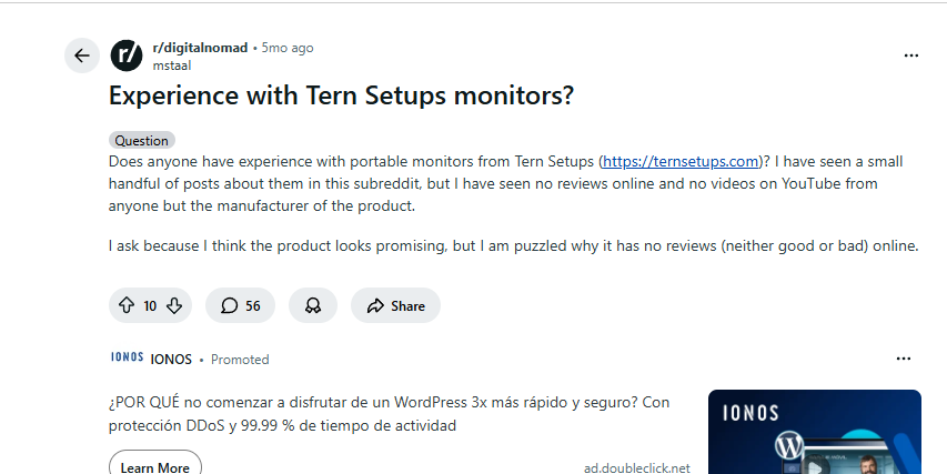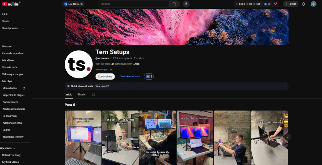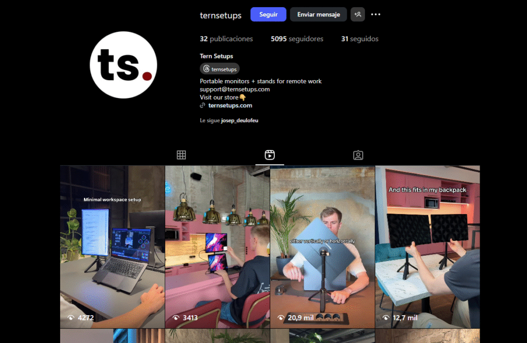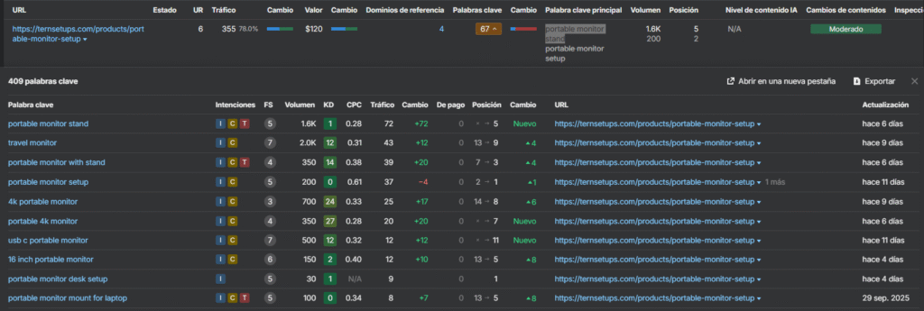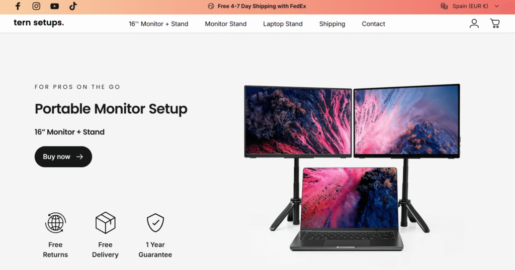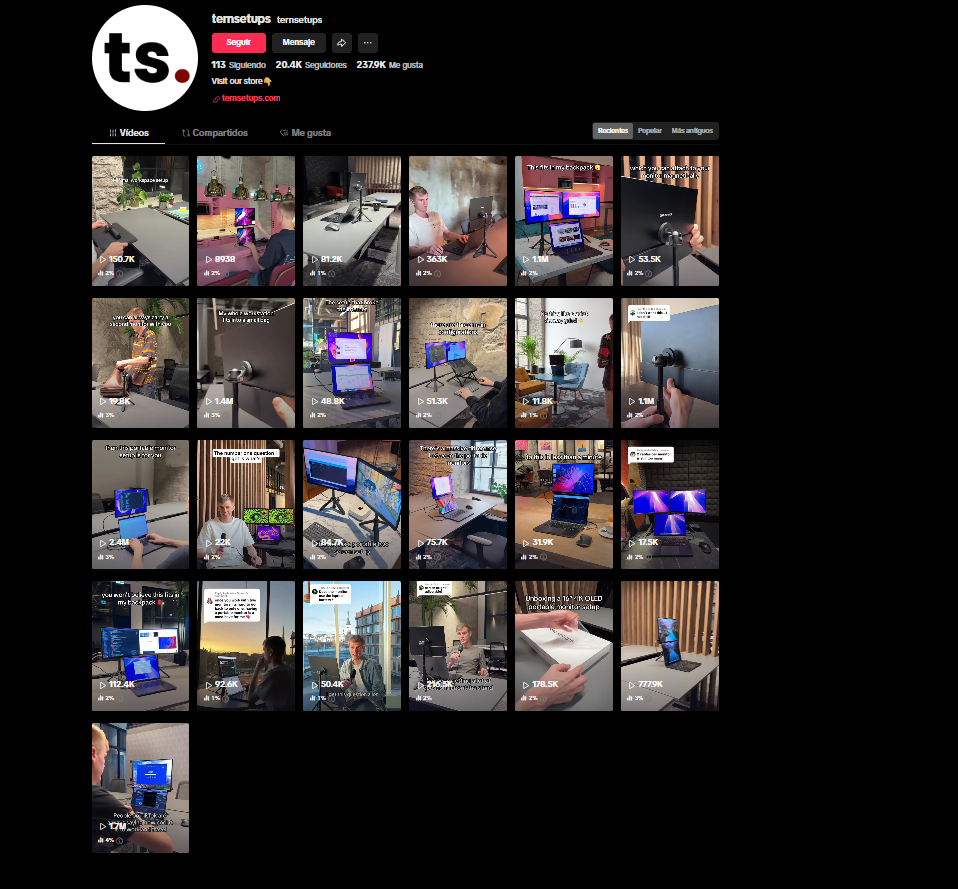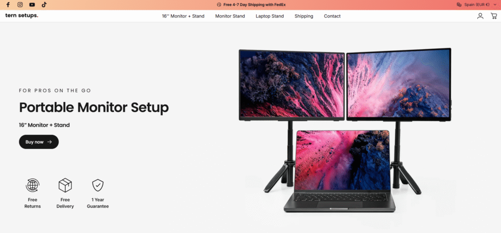 La URL que tiene más tráfico de su proyecto es la ficha de producto > https://ternsetups.com/products/portable-monitor-setup