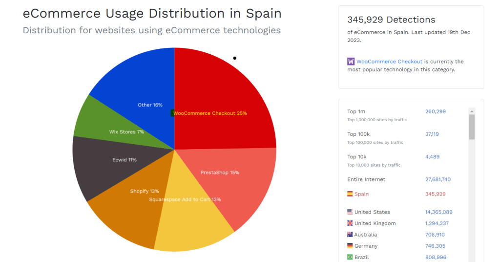 Tiene una cuota de mercado del 25% , lo que lo convierte en el creador de sitios web de comercio electrónico más popular en el mercado Español.
