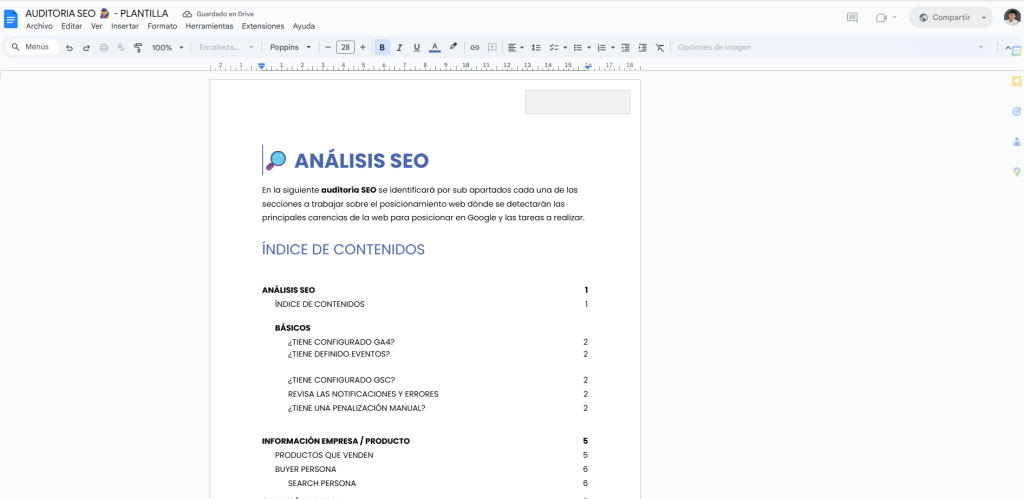 Con este listado podrás auditar el SEO de cualquier producto, además te recomiendo el uso de nuestra plantilla de auditoría SEO