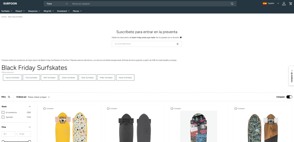 Aquí te dejo el ejemplo del caso real que vemos en el vídeo: https://surfoon.com/collections/kitesurf-black-friday